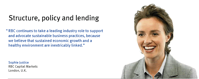 As the Kyoto Protocol comes into force, carbon dioxide and other greenhouse gas (GHG) emissions will be either an asset or a liability on the balance sheets of many of our clients or their subsidiaries. RBC is preparing for GHG emissions regulation and trading, particularly in response to the E.U.’s trading scheme, which started in January 2005.