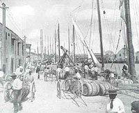 De petits bateaux transportaient les denrées des Antilles vers les ports de la côte Atlantique d'Amérique du Nord. Le port devait avoir le même aspect, en 1869, lorsque la Merchants' Bank of Halifax a commencé à financer le commerce du sucre, du cacao, du tabac et d'autres produits tropicaux. Quand le tourisme est devenu une grande industrie des Antilles, les succursales portuaires de la Banque Royale étaient bien placées pour servir les nombreux touristes qui arrivaient en bateaux de toutes tailles.
