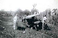 Le réseau international de succursales comptait sur les inspecteurs de la Banque pour garantir que tous les établissements étaient exploités selon les mêmes règles. Les voyages vers les succursales éloignées étaient rarement faciles puisque le transport terrestre était soumis aux caprices météorologiques qui pouvaient transformer les chemins de campagne pittoresques en bourbiers. On voit ici le véhicule embourbé d'un inspecteur à Porto Rico, en 1917.