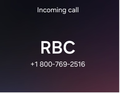 Les appels semblent provenir d’un numéro de téléphone de RBC : 1 888 769-2598. C’est ce que l’on appelle la « mystification de l’identité de l’appelant » : l’appelant falsifie le numéro qui s’affiche sur le téléphone du destinataire. Les fraudeurs tentent de vous faire croire qu’un employé de RBC vous appelle.