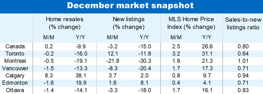 Demand-supply conditions remained exceptionally tight at the end of 2021. A very high sales-to-new listings ratio (at 0.80 nationwide) in December attests to sellers maintaining a strong bargaining power at this juncture. This is true in virtually every region of the country, including Alberta where conditions have tightened considerably through the fall.