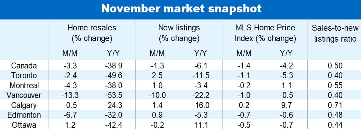 While we interpret the slowing of the pace of decline as a sign the market downturn has run most of its course, we don’t expect things to heat up again in short order. Higher interest rates and stretched affordability will continue to challenge buyers for some time. This will keep activity quiet for a while longer even if it stabilizes near current levels. We think benchmark prices will keep trending lower until spring.