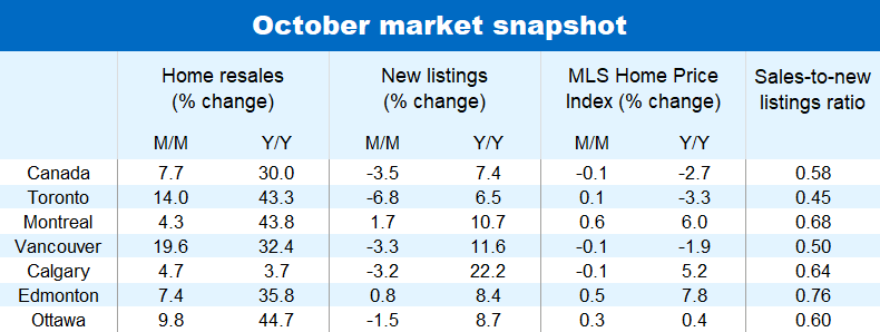 The situation is much tighter in the Prairies, Quebec, and parts of Atlantic Canada. Prices in these regions continue to rise moderately for the most part. That said, strong increases in new listings since the summer have cooled prices in Calgary—leading to the first month-over-month drop in almost two years. Edmonton is now emerging as Canada’s hottest major market, with Montreal also making a run for it. Both recorded sizable price gains in October.