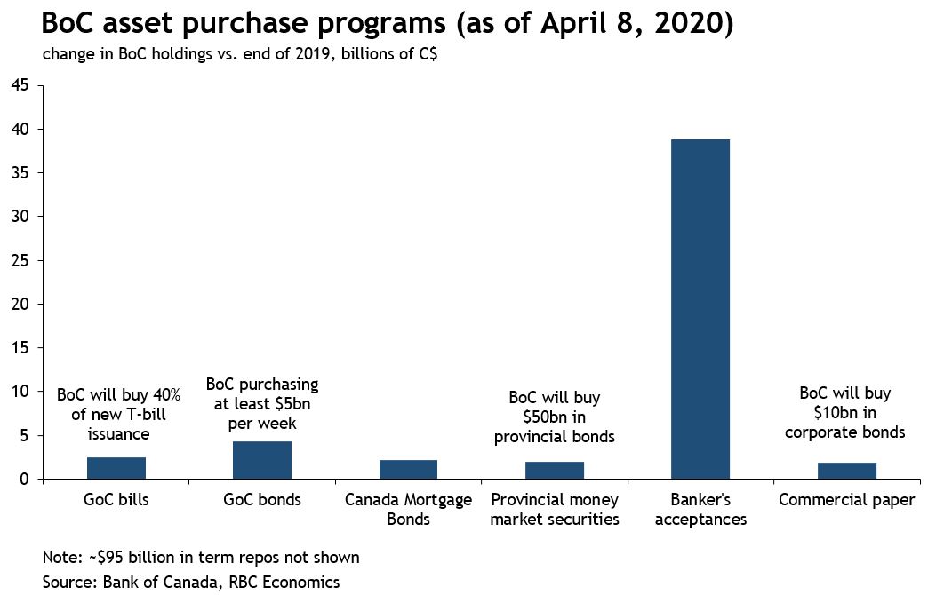 One of the key themes in the past six weeks has been a consistent increase in the size and scope of both monetary and fiscal support to address the COVID-19 crisis. The Bank of Canada kept that up today with several new measures, including expanding its three-week-old asset purchase program to include provincial and corporate bonds.