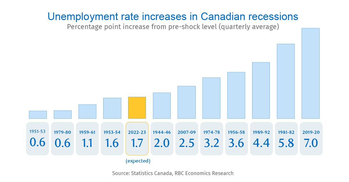 - In previous work, we projected a moderate recession for Canada’s economy in 2023. We now believe this downturn will arrive as early as the first quarter of next year.