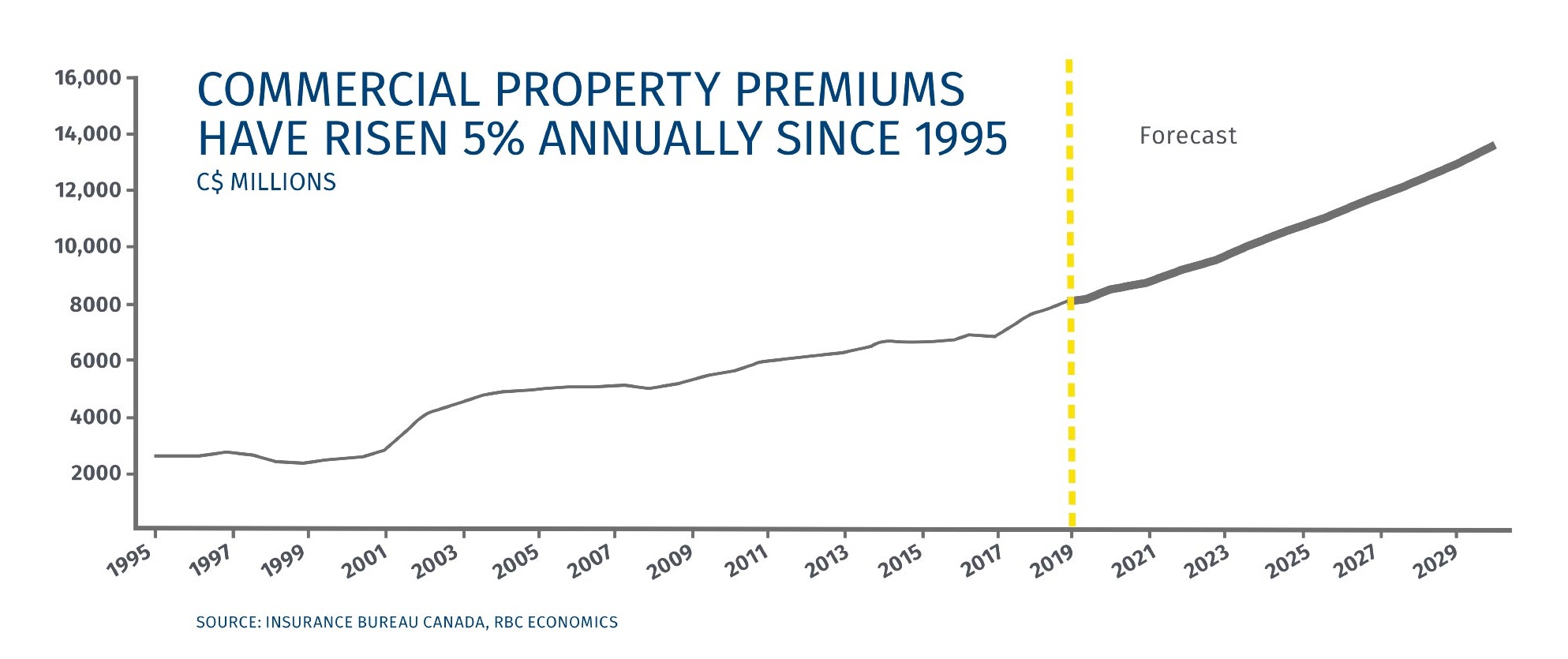 Canadian households and businesses have paid the cost. Last year, half of Canadian businesses said they were struggling with high insurance costs, up from 43% the year before. Household spending on home insurance premiums has grown at almost twice the clip of overall spending over the past decade, with Canadian households paying an average of $700 for home insurance in 2017, up 35% from 2010. The risk of further increases is high.