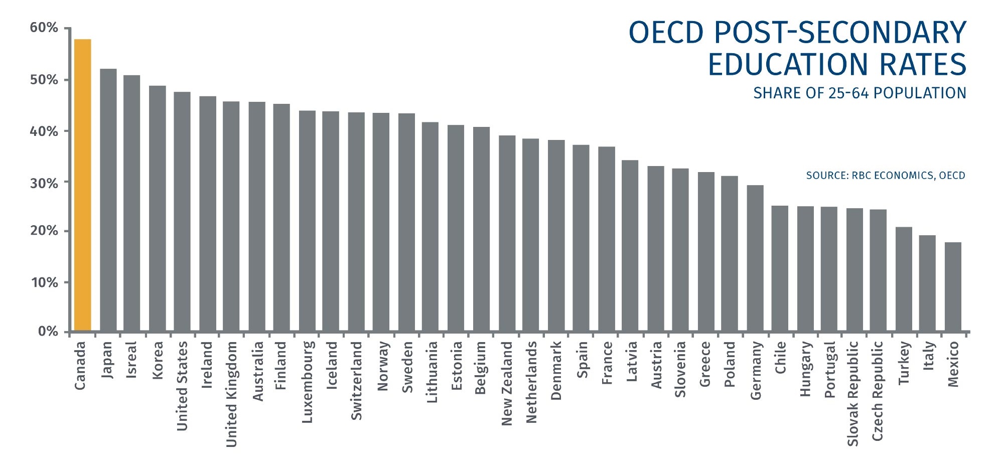 As we have argued in our Humans Wanted research and elsewhere, investing heavily in human skills that complement technologies such as machine-learning and artificial intelligence will go a long way to closing the 20% gap in labour productivity between Canada and the rest of the G7.