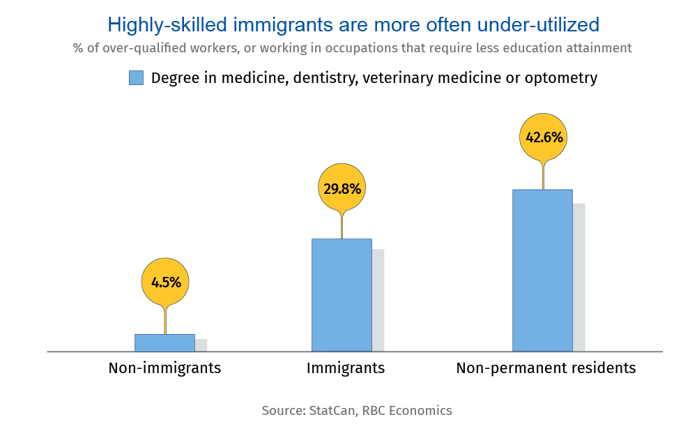 And there are a range of reasons to put them to use. Indeed, new immigrants can fill open positions, but they also increase demand for housing and consumer goods which in turn raises demand for labour. They’re also more likely to live in homes that are not suitable to the size or composition of their household. Better use of skills can offset all of those pressures by making the economy more productive.
