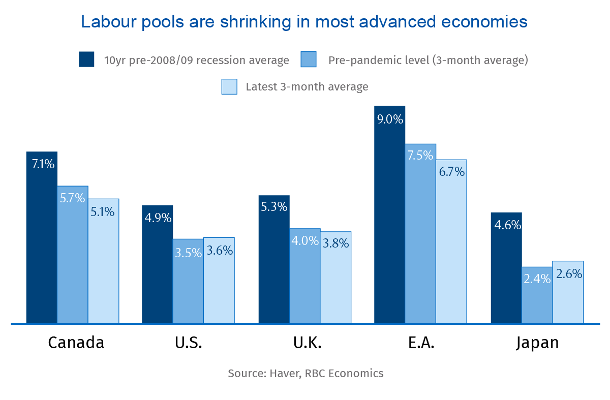 - A recession in 2023 might temporarily ease worker shortages—but they’ll return as Canada’s population ages.
