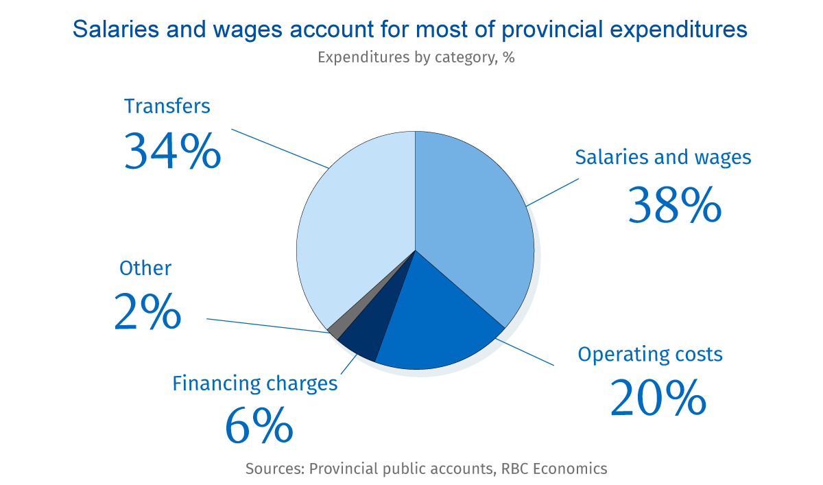 Other spending pressures will emerge as Canada’s economy softens. For instance, given government transfers typically rise during times of economic turmoil, we’re likely to see this share of expenses increase during the upcoming recession.