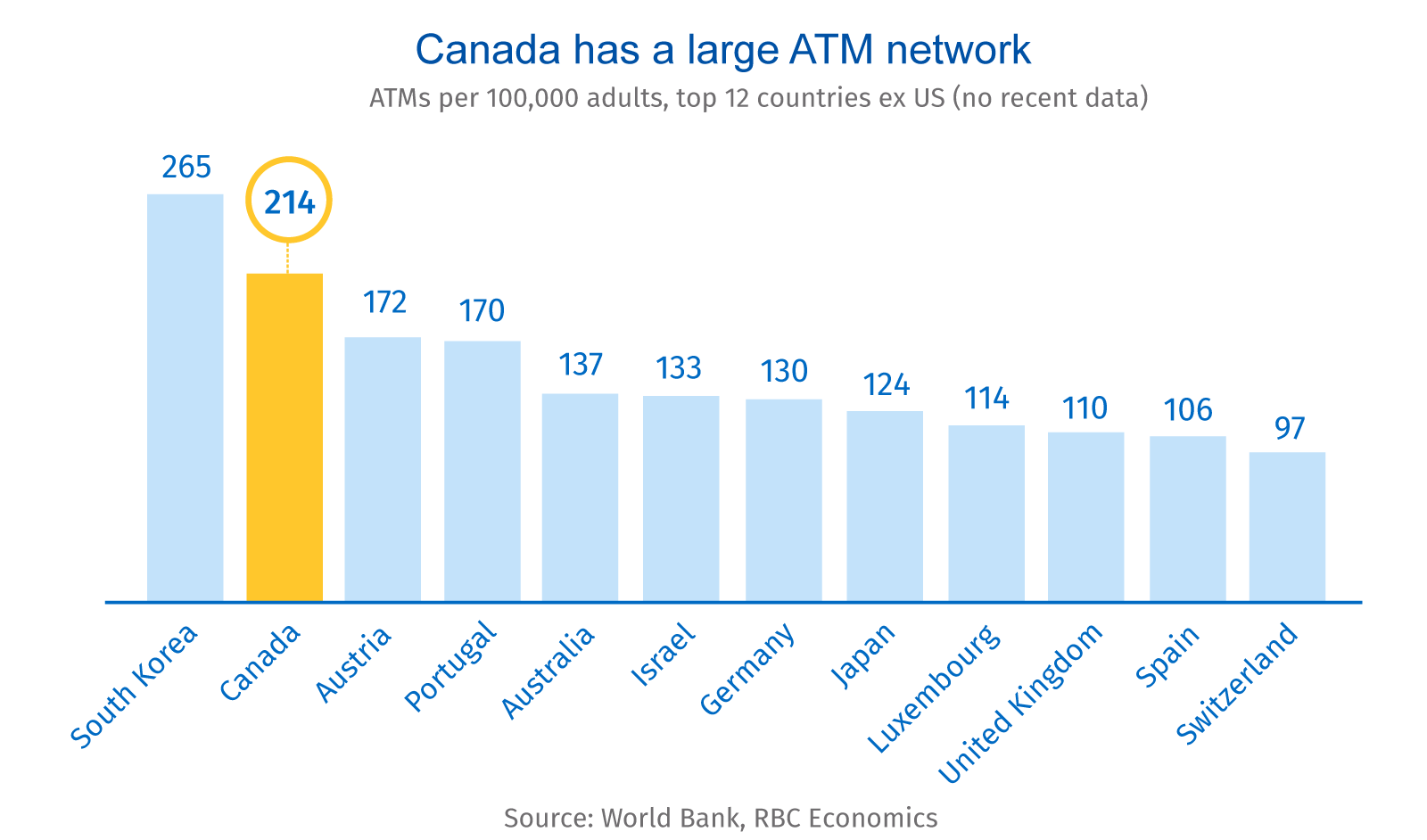 • Canada can reduce the cost of hard currency, including by streamlining the country’s large ATM network.