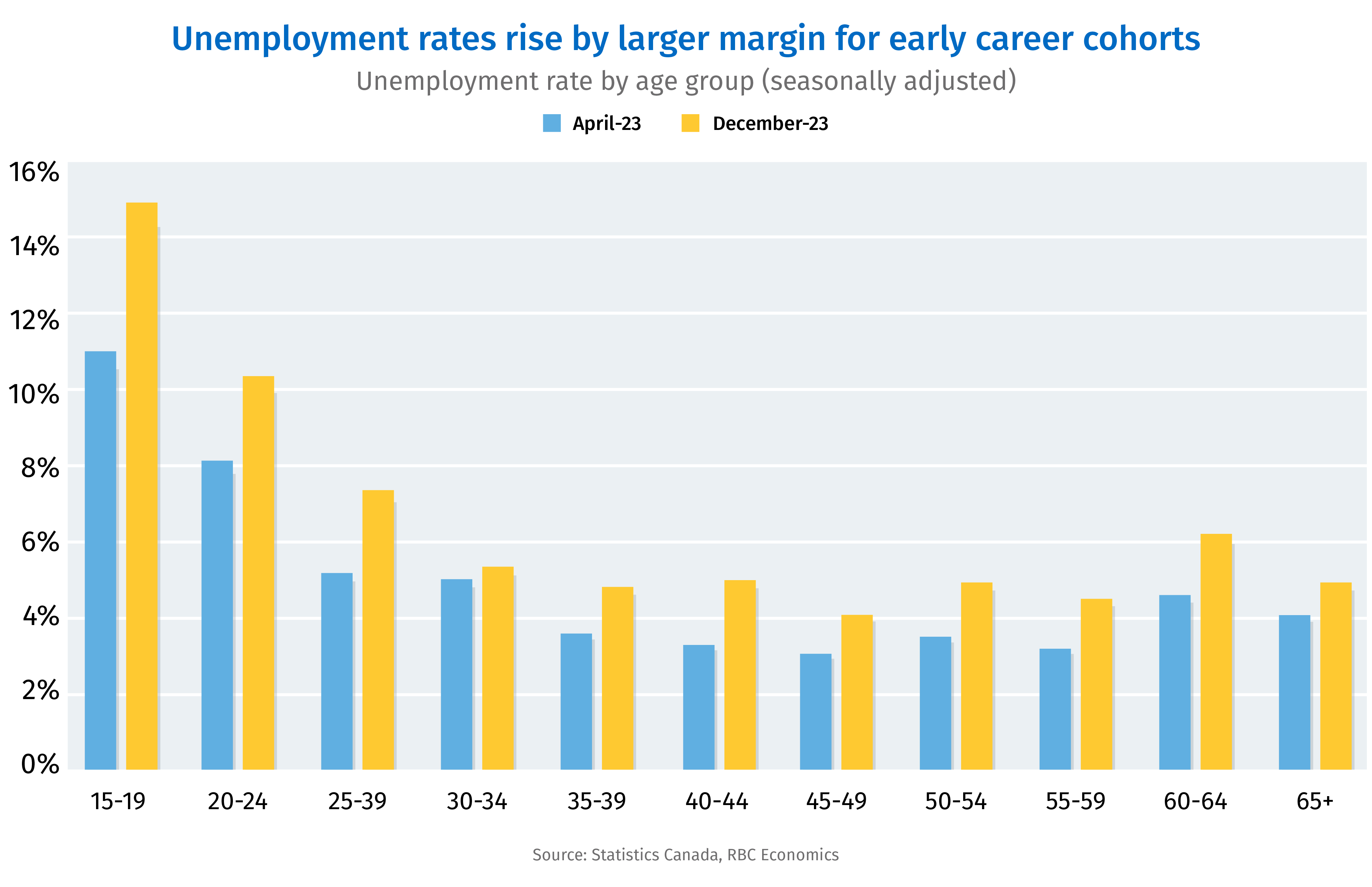 The magnitude and pace of Canada’s rising unemployment rate are consistent with what happened in previous recessions. But there isn’t a big surge in layoffs this time around. Instead, it’s taking more time to absorb new workers into the workforce as the population grows rapidly, leading to longer job searches for students and new graduates. Economists Carrie Freestone and Rachel Battaglia explain why students and new graduates are bearing the brunt of the labour market downturn.