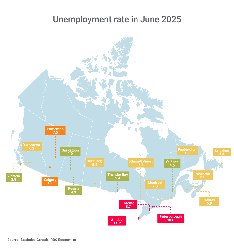 Quebec and British Columbia are also contributing to the national unemployment rate increase with Quebec’s substantial manufacturing workforce (30% of Canada’s total) facing similar trade-related pressures.