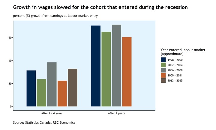 In the fourth quarter of 2008, Canada entered its worst slowdown since the 1980s. It would be another year before the economy returned to growth. While Canada fared better than some other countries, the Great Recession’s impact was significant. Among those most affected: Canadians just entering the workforce.