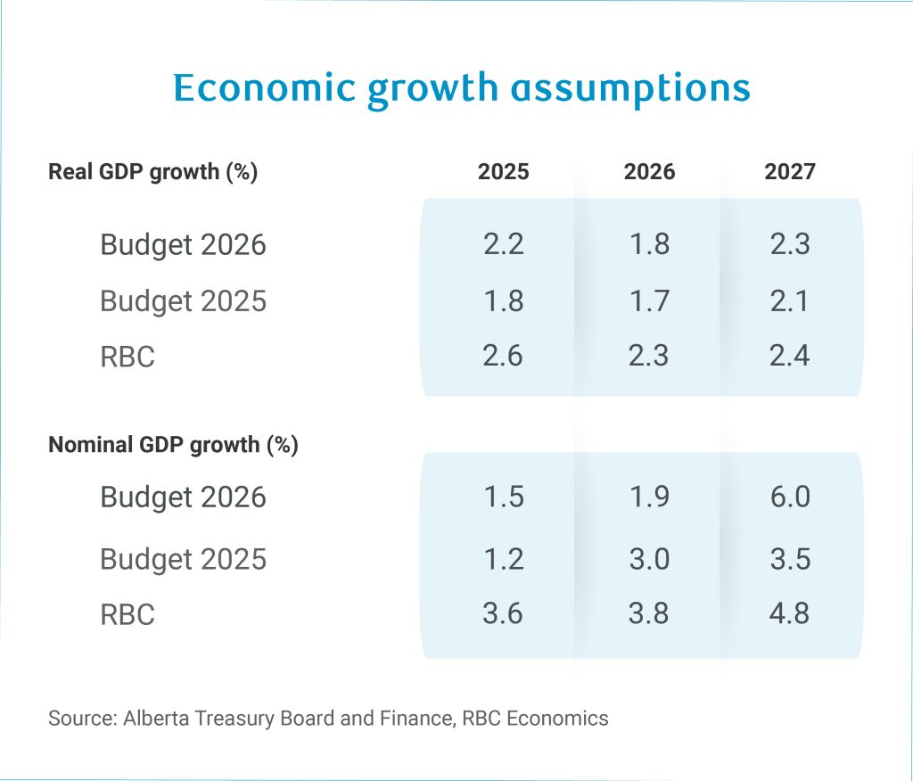 The government’s oil price assumption is grounded in the current market consensus but leaves minimal room for downside surprises. While the 2026 oil price forecast is only marginally higher than our own, the oil price forecast in 2027 departs more meaningfully from ours and is nearly 10% above the $60.50 USD per barrel of consensus.