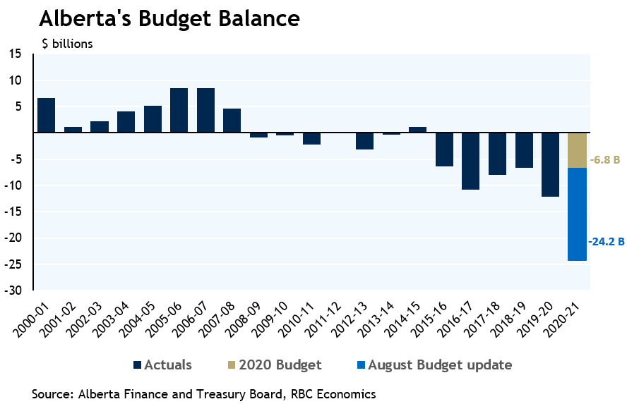 • Alberta’s deficit is expected to come in $16.8 billion higher than previously budgeted