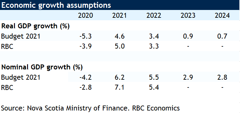 Even in the midst of a pandemic budget, Nova Scotia’s budget theme is consistent with pre-pandemic budgets: capital investment will drive growth. Investment in public infrastructure will help the province return to balance, but not without amassing additional debt. Under current low-interest conditions, higher debt levels needed to finance the infrastructure investment are historically easy to manage. But as growth strengthens and interest rates pick up, Nova Scotia will have to manage its longer-term debt burden. Once we emerge from the pandemic, we will look for guidance on a fiscal anchor.