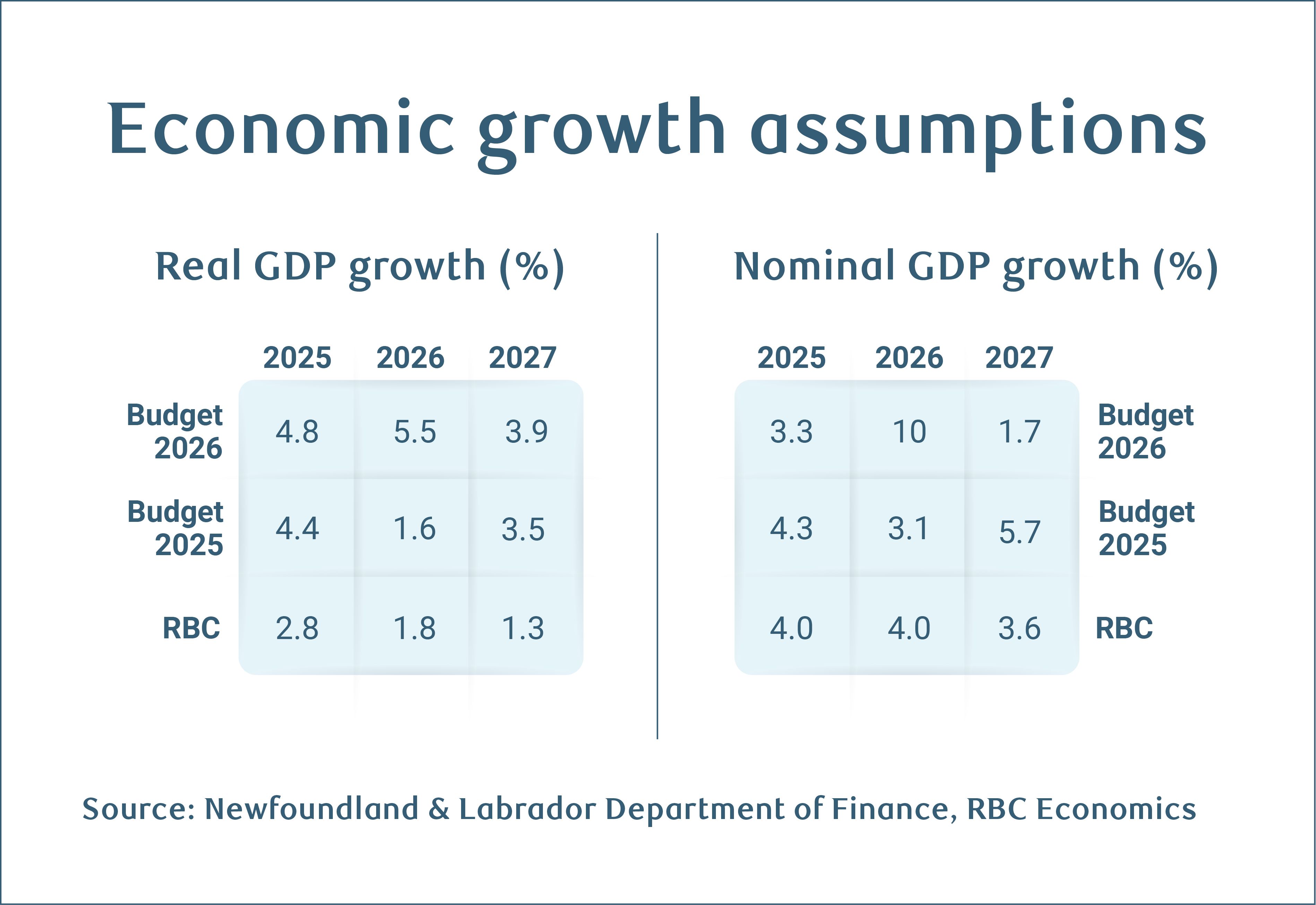 Upgrades to the economic backdrop reflect a stronger outlook for the oil and mining sectors. Higher oil prices—Brent crude is assumed to be US$81.10 per barrel or 13% higher in 2026 compared to Budget 2025’s assumption—and rising oil production from the West White Rose field is commencing in the second half of the year, alongside the first full year of production from the Valentine and Hammerdown gold mines will supercharge the province’s resource output. Together, these developments are expected to boost royalties and mining taxes.