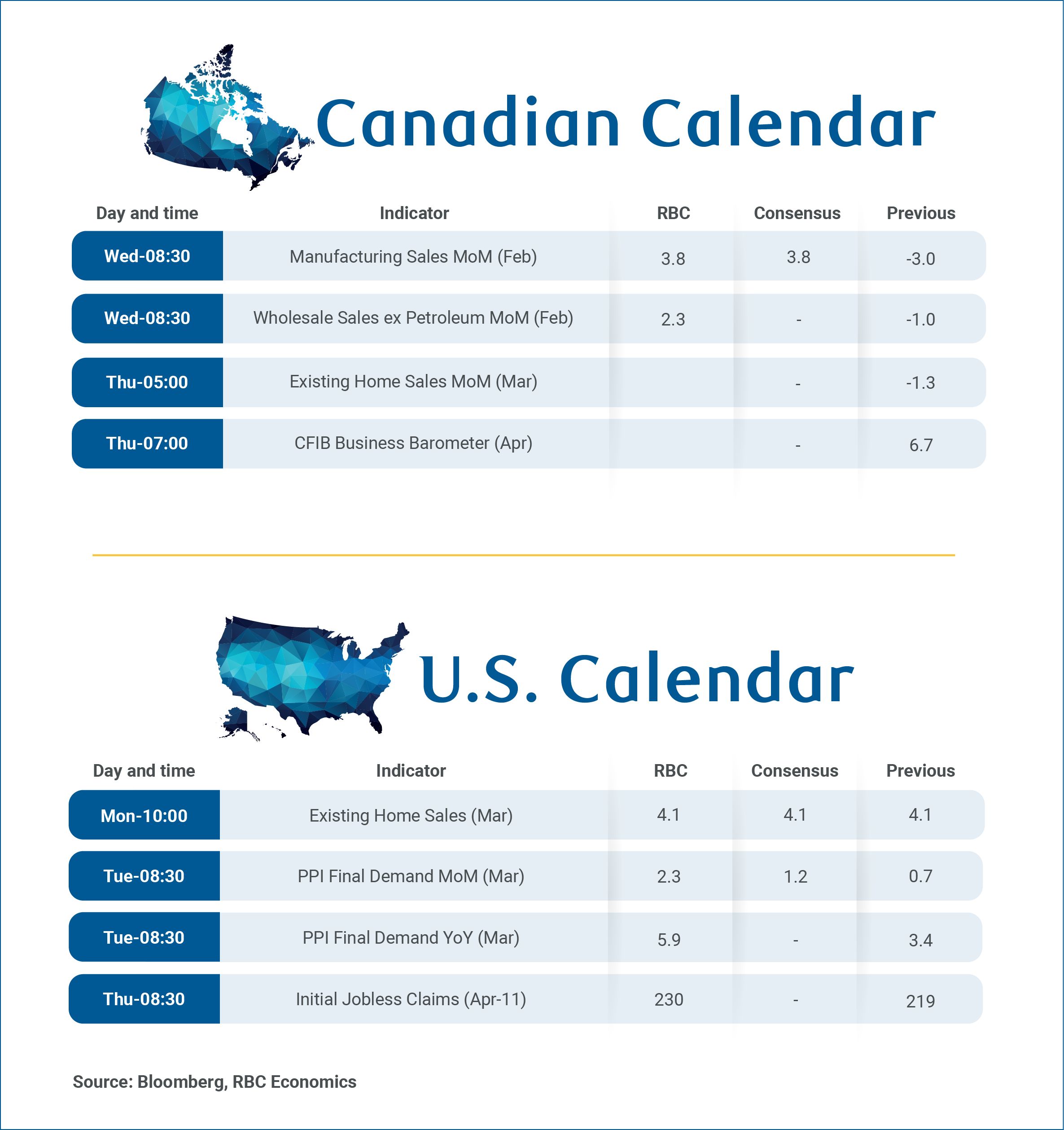 It’s a relatively quiet week for Canadian data releases with attention focused on February’s manufacturing and wholesale trade reports on Wednesday.