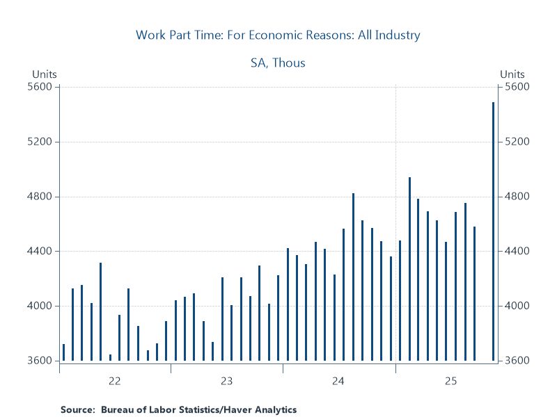 It was the uptick in U6 unemployment – that moved notably higher to 8.7% from 8.0% in September. Three-quarters of the uptick in U6 unemployment can be attributed to those working part time for economic reasons. But the aggregate hours index in payrolls suggests this stems from re-entrants who could only find part-time work, not full-time workers losing hours.