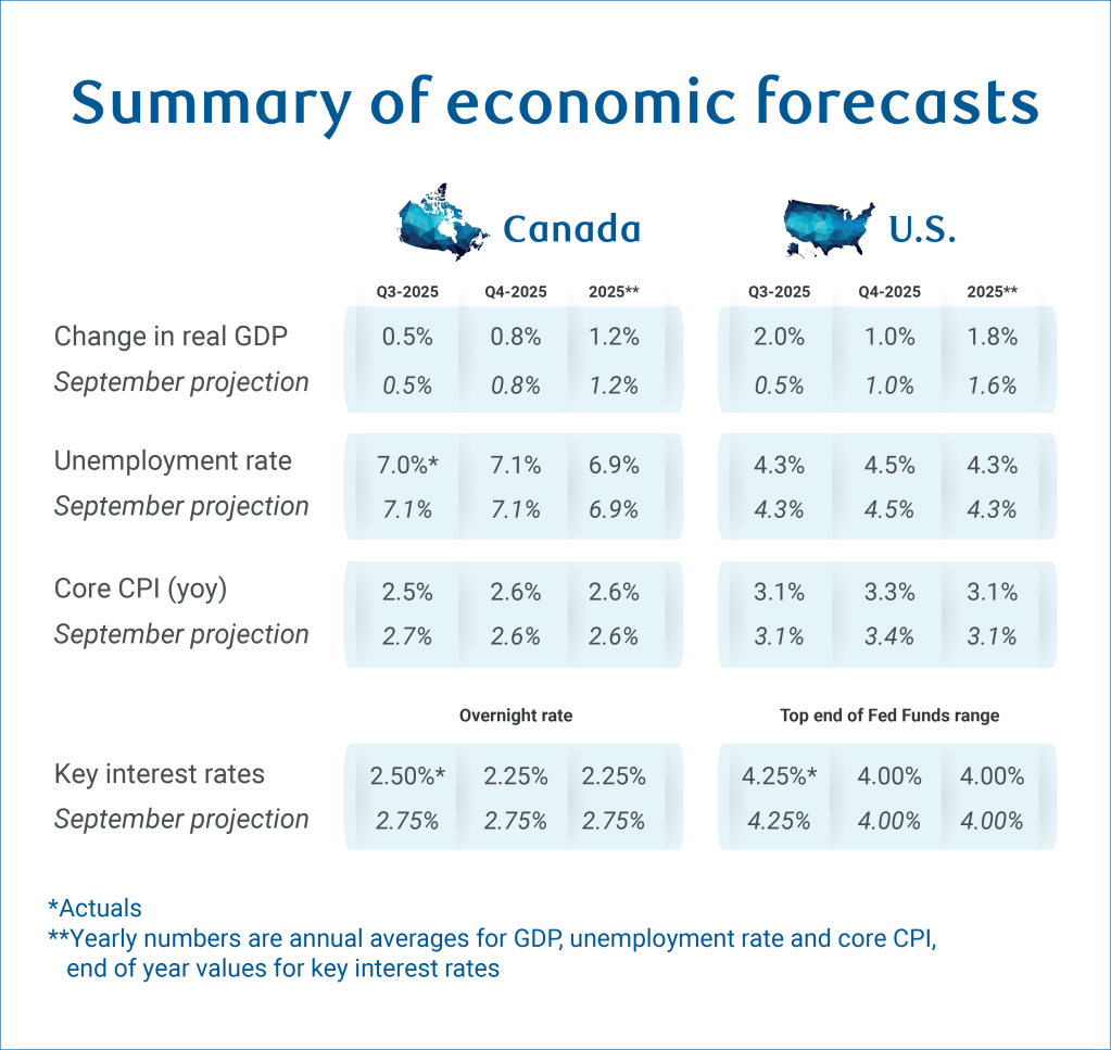 Preserving the Canada’s CUSMA tariff exemption remains critical for the near-term outlook. While recent rhetoric from both U.S. and Canadian officials turned more constructive, tariff uncertainty still poses significant downside risk.