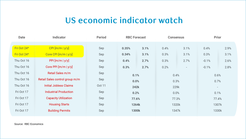PPI likely rose +0.4% m/m in September with continued pressures expected from trade-exposed sectors like transportation and warehousing as well as rising food costs.