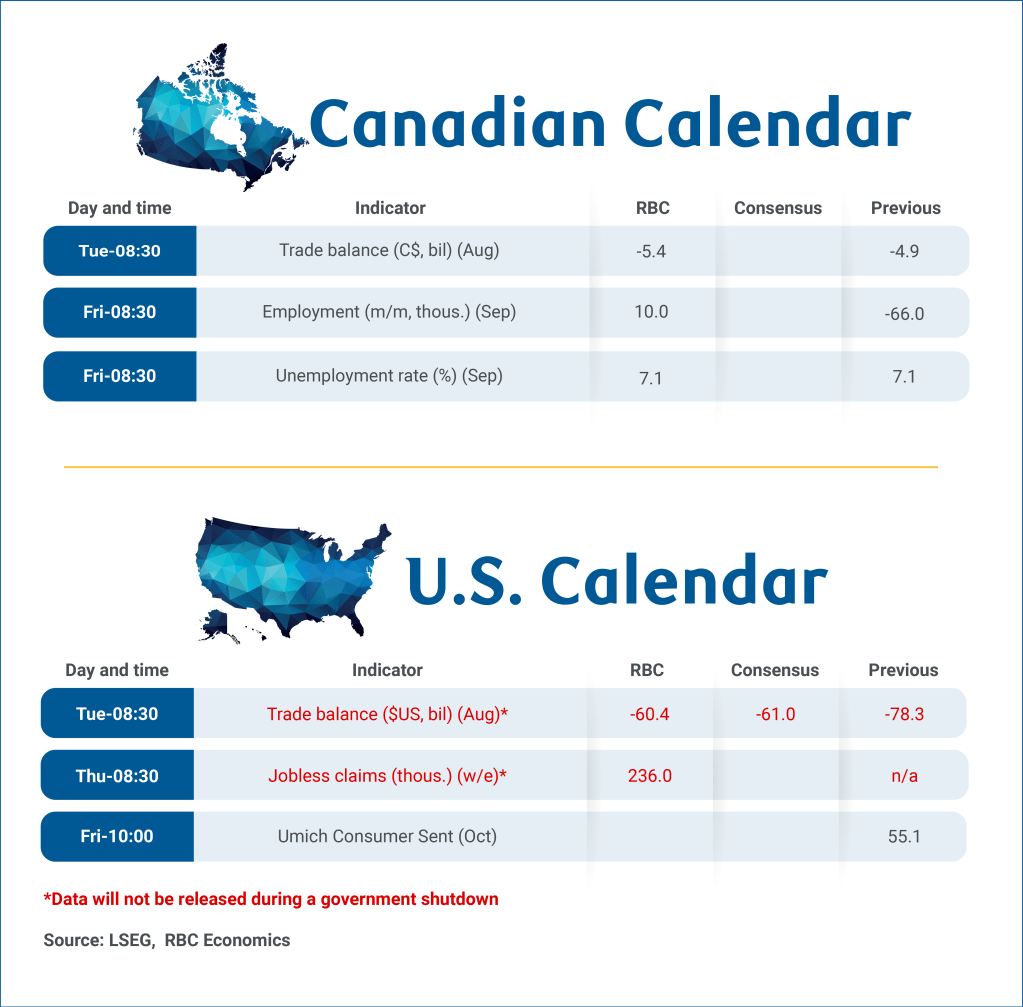 Meanwhile, tracking exports could become more difficult if the U.S. government shutdown continues to drag on. Statistics Canada relies on import data from the U.S. Census Bureau to create Canadian export estimates, and that will not be provided by the U.S. agency as long as the shutdown lasts.