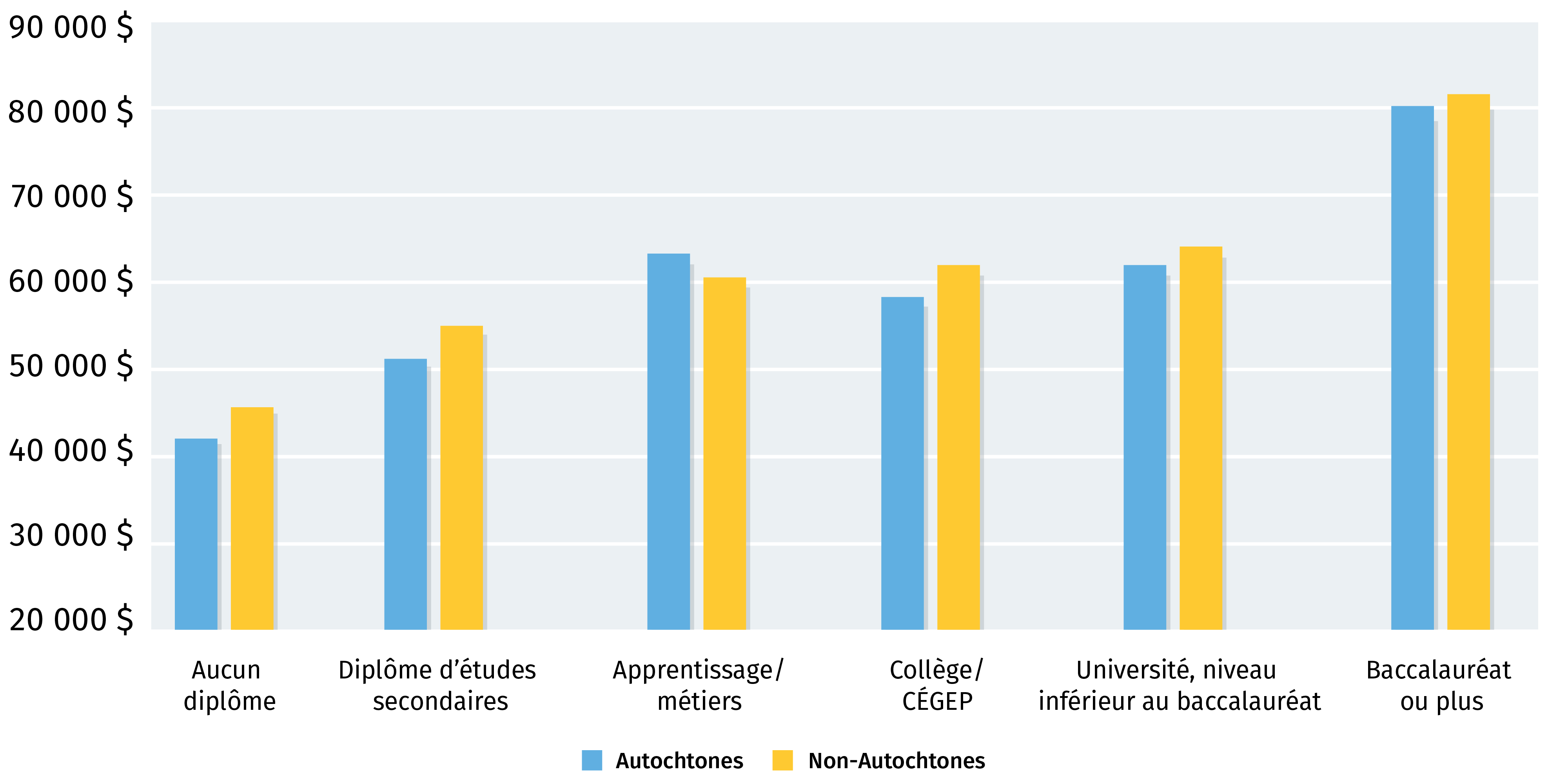Les écarts de revenus des Autochtones sont plus importants pour les personnes n’ayant pas suivi d’études supérieures