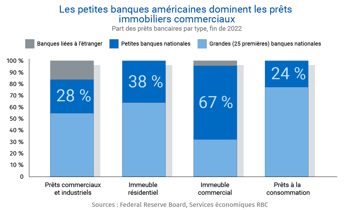 - Les investisseurs du secteur immobilier commercial sont particulièrement préoccupés par cette situation, car les petites banques américaines sont très actives à ce chapitre.