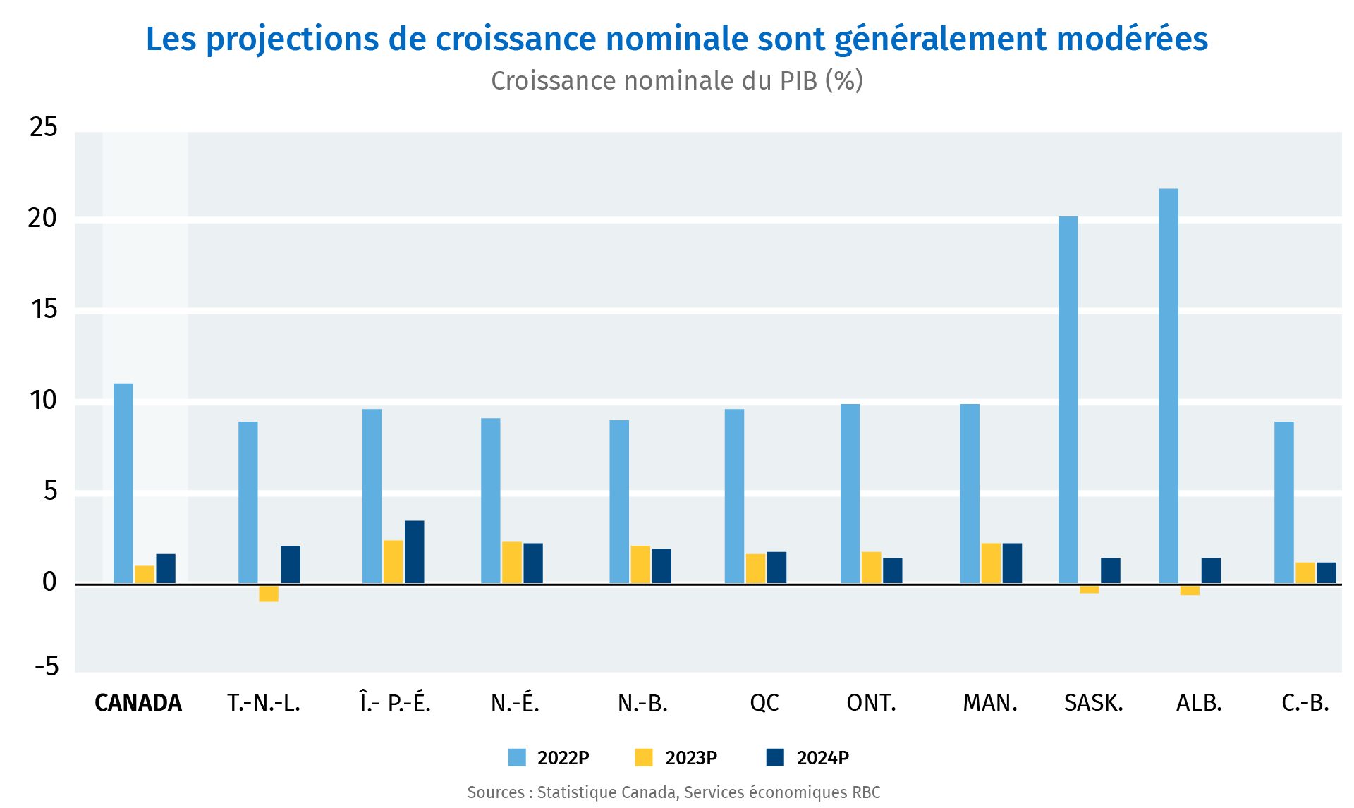 Un brusque ralentissement de la croissance économique nominale (que nous attendons dans toutes les provinces par rapport à 2022) pourrait freiner la croissance des revenus des gouvernements au cours de la période à venir.