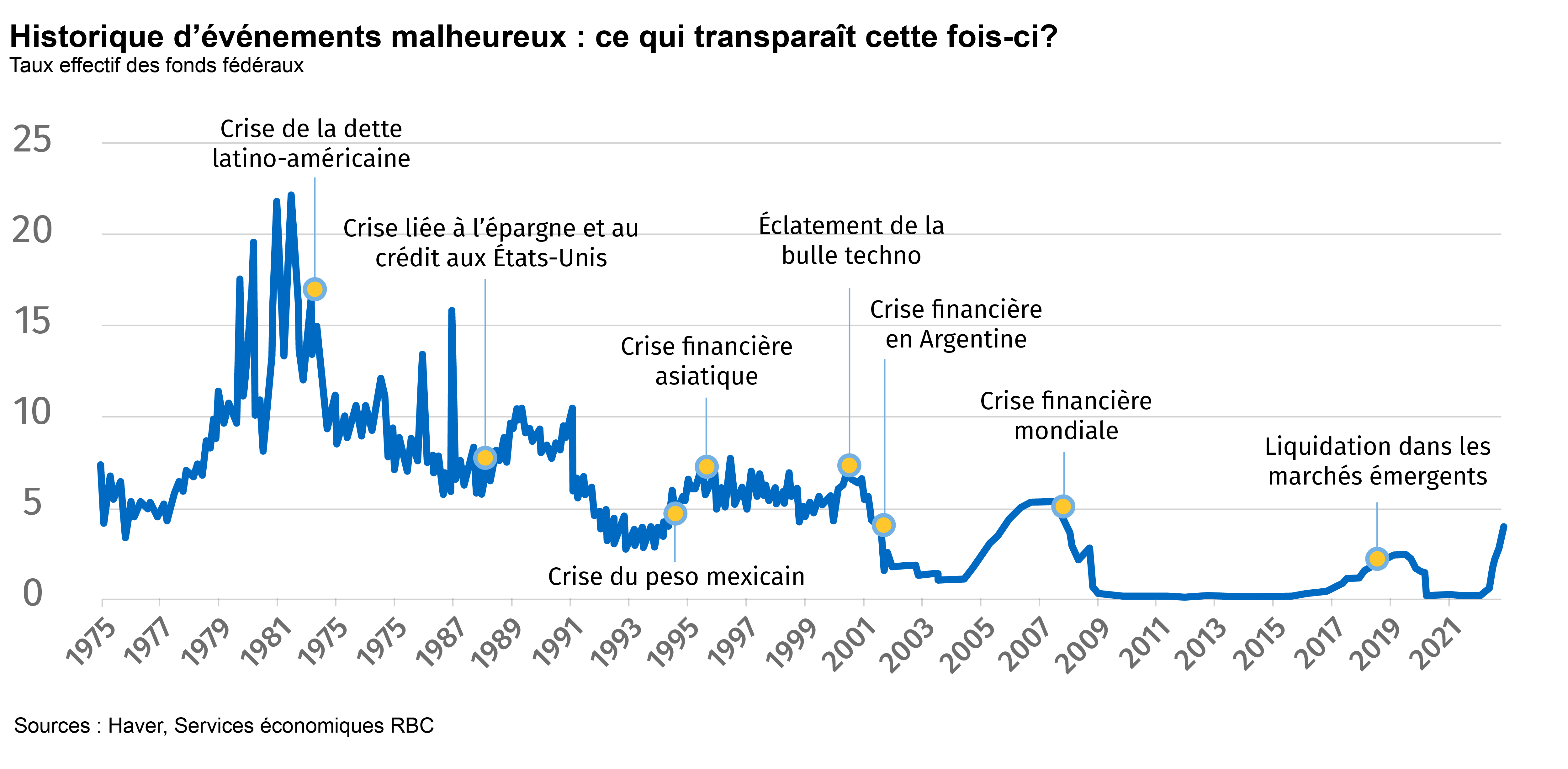 À court terme, ce sont les prévisions inflationnistes qui voleront la vedette. Les points d’équilibre du taux d’inflation indiquent que les marchés croient que la Fed et la Banque du Canada arriveront toutes les deux à ramener l’inflation dans la fourchette cible à moyen terme. D’après nos prévisions, les coûts d’emprunt à terme diminueront tout au long de 2023. Mais la flambée inflationniste imprévue de 2021-2022 ajoute une dose d’incertitude dans ces perspectives, si bien qu’il faudra probablement inclure une petite prime de risque liée à l’inflation dans l’avenir.