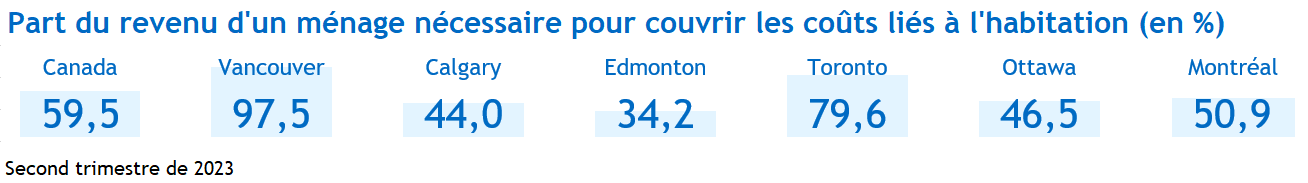 - Mais ce fardeau demeure extrêmement lourd de façon générale : les mesures de RBC pour le Canada, Vancouver, Victoria et Toronto, et dans une moindre mesure, pour Ottawa, Montréal et Halifax restent proches des pires niveaux jamais vus.