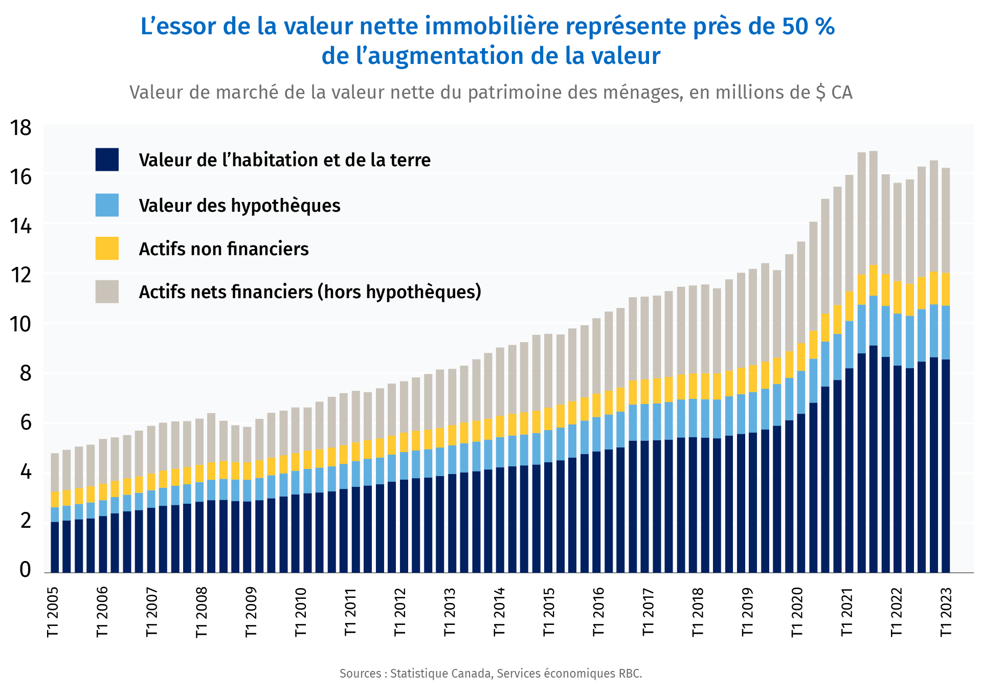 - Au Canada, l’accession à la propriété représente le principal moyen de constituer du patrimoine : en effet, les ménages ont amassé près de la moitié de leur patrimoine au cours des trente dernières années sous l’impulsion du secteur immobilier résidentiel.
