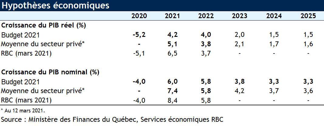 Comme la troisième vague de la pandémie soulève des préoccupations alors que les campagnes de vaccination massive donnent de l’espoir, les prévisions sont à la fois prometteuses et incertaines. Le budget de 2021 est à la fois défensif et offensif. Il consacre plus de 10 milliards de dollars de financement supplémentaire sur six ans à la défense et au renforcement du système de santé provincial, dont 7 milliards de dollars serviront précisément à surmonter la crise sanitaire, et 2 milliards à améliorer les services aux personnes âgées. Il prépare aussi le Québec pour l’avenir en augmentant les investissements dans le système scolaire, la formation professionnelle, l’accélération de la transition numérique (notamment l’expansion des services d’accès Internet à haute vitesse), et l’aide à la reprise des secteurs du tourisme et de la culture, qui ont été durement touchés.