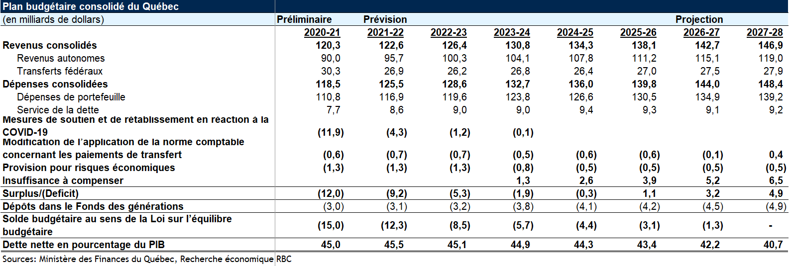 - Le gouvernement prévoit un déficit de 12,3 milliards de dollars en 2021-2022.