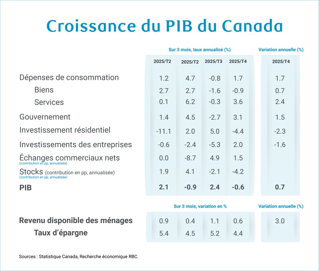 Le PIB a reculé de 0,6 % (taux annualisé) au quatrième trimestre, mais avec des données sous-jacentes plus solides.
