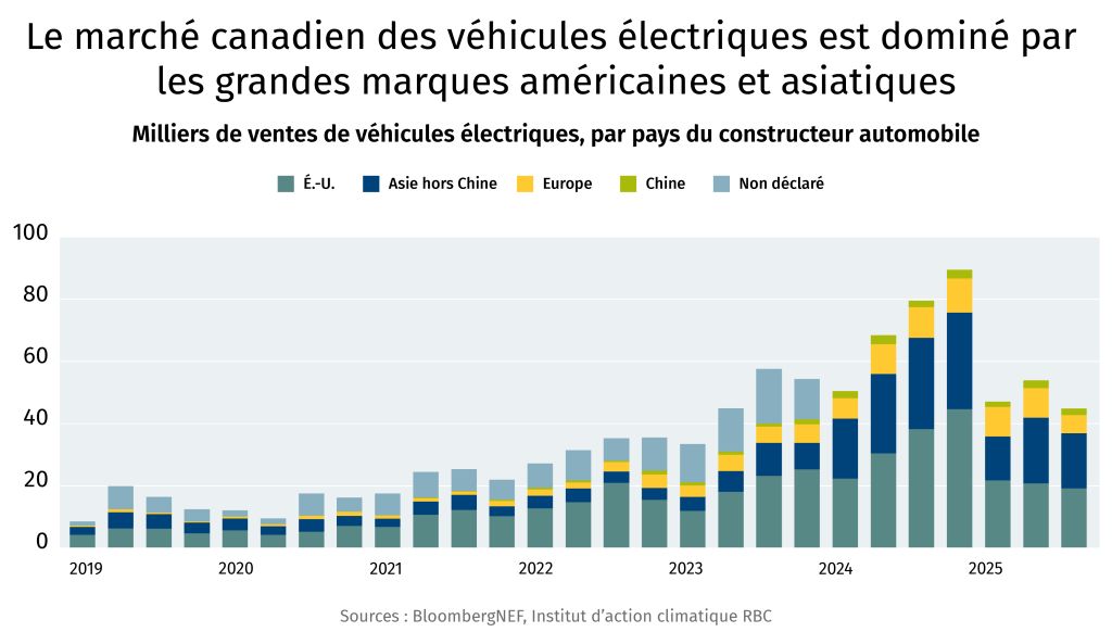 Environ la moitié des véhicules importés de Chine coûteront moins de 35 000 $ d’ici 2030. Le prix d’achat moyen d’un véhicule électrique au Canada en 2024-2025 était d’environ 67 000 $.