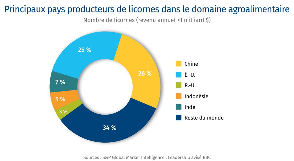 L’absence de « licorne » agroalimentaire canadienne — définie comme une entreprise en démarrage privée générant un chiffre d’affaires annuel d’au moins 1 milliard de dollars — constitue un signal macroéconomique indiquant que le Canada ne dispose pas d’un écosystème capable de propulser les entreprises prometteuses8. Les pays comparables, comme les Pays-Bas, l’Allemagne et l’Australie, comptent tous des licornes, et les poids lourds comme les États-Unis, l’Inde et la Chine disposent d’un portefeuille stable de ces entreprises à forte valeur.